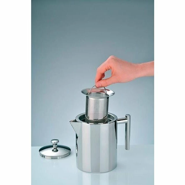 Die formschöne und glänzende Teekanne von Alfi überzeugt durch ihr edles Aussehen und die hohe Funktionalität: In der Teekanne aus Edelstahl ist direkt ein Teesieb integriert, damit Sie Ihren Lieblingstee direkt in der Kanne brühen können. Die Kanne ist frei von Schadstoffen und zudem schlag- und bruchfest. Zum Reinigen in der Spülmaschine geeignet.